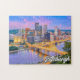 Dieses landschaftliche Puzzle mit Puzzleteil zeigt ein Foto mit Blick auf die ikonische Stadt Pittsburgh, Pennsylvania, bei Sonnenuntergang. Bitte passen Sie alle verfügbaren Optionen nach Ihren Wünschen an.