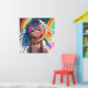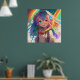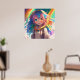 Schönes Anime-Mädchen mit Regenbogen-Hintergrund, Farben verwendet sind pink, aquamarin, orange, blau, lila und blau. Niedliche und farbenfrohe Kinderkünstlerin. Generatviekonzent