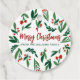 Schöne Aquarell-grüne Blätter mit roten, heiligen Beeren schmücken diese niedliche Familie Frohe Weihnachtsmarke für Ihre Weihnachtsgeschenke. Personalisieren Sie das festliche rote Urlaubsskript mit Ihrem Nachnamen in der Mitte dieses wunderschönen botanischen Musters.