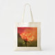Pretty orange rose standing out against a blurred background in soft orange and green tones.