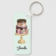 Personalisierter Schlüsselanhänger mit köstlich aussehendem Party. Dieser Dreifach-Kuchen ist mit Perlen geschmückt. Rose Gold, Magenta und Gold. Mit einem glänzenden Farbverlauf für Extra-Glitz und Glam.