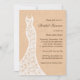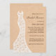 Ein romantisches Hochzeitskleid betont diese Brautduscheinladung auf einem illustrierten Bretterhintergrund. Es wird auf dem Basispapier gezeigt, aber ich empfehle das Gewicht und die Textur des Leinenpapiers.