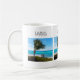 A mug with a scenic photograph. A clear blue ocean with a white sandy beach.