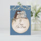 Beautiful Blue Brown Owl Glitter Wedding Save The Date. Unique, beautiful, modern design. Easy to be personalized. Font style, size, and colors can be changed. Matching items available.
