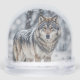 Beautiful strong looking wolf in the snow. A wildlife Christmas holiday snow globe.