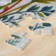Beautiful whimsical puzzle. Wall art with an illustration of a woman holding a white fluffy cat surrounded by dandelions, The picture has a crochet style fabric look.