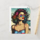 Beautiful Woman on Beach Comic Book Pop Art Postkarte