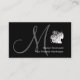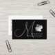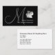 Klassische Visitenkarten-Vorlage für Monogramm-Friseure inklusive eines schönen Friseur-Symbols, Initial-Monogramm-Namen und kluges Zwei-Seiten-Design, das Sie online personalisieren können. Entworfen für einen beruflichen Friseur, einen Friseur oder einen Schönheitssalon.