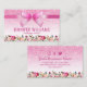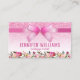 Trendy, berufliche Beauty-Visitenkarten mit rosa Glitzer-Hintergrund, üppiges Band, Blumendekor und leicht personalisierter Vorlage.