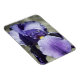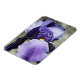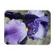 Ein Foto einer neuen lila Iris-Blume blüht. Der Hintergrund ist ein Felsbrocken im Garten.
