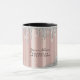 Personalisiert Trendy Modern Elegant Rosa Rose Gold mit silbergrauen Glitzer Tropfen Custom Shining Tasse für Makeup Künstler, Eyelash Erweiterungs-Experten, Beauty Professionisten und Glam, coole Girls! Diese luxuriöse Tasse-Vorlage bietet Rose Gold und rot-rosa metallische Imitate Folie unter glitzerndem Glitzer Tropfen. Anpassbare schwarze Details und personalisiertes Hintergrundbild.