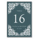 Die Art Deko Chic Tischnummer-Karten sind mit einem waldgrünen Hintergrund versehen, der mit einem farbenfrohen, weißen, papel picado-Stil verziert ist und an den Ecken detailliert dargestellt ist. Personalisieren Sie mit Ihren Namen und Hochzeitstermin, oder benennen Sie jeden Tisch für eine zusätzliche persönliche Touch. Design wiederholt sich auf der Rückseite. Koordiniert mit unserer Beaux Arts Hochzeitssuite in Spruce.