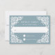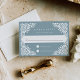 Diese elegante RSVP-Karte, die sich mit unserer Hochzeitskollektion Beaux Arts abstimmt, zeichnet sich durch einen weißen, papelfarbenen Rahmen im Pikadostil aus, der Ihren Wunschtermin und Ihre individuelle Akzeptanz und Abnahme auf einem staubigen, blauen touristischen Hintergrund abbildet.