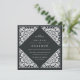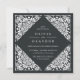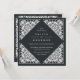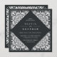 Elegante Hochzeitseinladungen aus der Jahrtausendwende in schwarzem Schwarz mit einer ornatal detailreichen Deko-Grenze, die das Aussehen von geschnittenem Papier im Pikadostil des Papels anregt. Quadratische Form.
