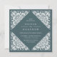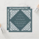 Elegante Vintage Hochzeitseinladungen in reichhaltigem Waldgrün mit einer orginell detaillierten Deko-Grenze, die das Aussehen von geschnittenem Papier in einem papel picado Stil. Quadratische Form.