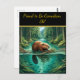 Ein Biber ist in einem Bach untergebracht, umgeben von üppiger Vegetation und von Sonnenlicht durch die Blätter erhellt.