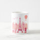 Design zum Thema von Paris. Möglichkeit, den Stil und die Farbe des Bechers, die Größe und den Ort des Designs zu ändern.