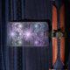Die beeindruckende Fraktal-Kunst, glänzende violette, graue Fantasie-Blume. Design für Ihr Gepäckanhänger und mehr.