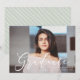 Mit unseren Ankündigungen für die Graduierung von Graduiertenschreiben kündigen Sie die besondere Leistung Ihres Absolventen an. Die stilvollen Graduierungsankündigungen verfügen über einen modernen Kalligraphieskript-Schriftart, der das Lieblings-Senior-Foto des Absolventen überragt. Personalisieren Sie die modernen Graduierungsankündigungen mit dem Namen des Absolventen, dem Namen der Schule und dem Abschluss Jahr. Auf der Rückseite der Anzeige befindet sich ein von Hand gezeichnet diagonal gestreifter Hintergrund in Salbei grün.