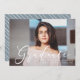 Mit unseren Ankündigungen für die Graduierung von Graduiertenschreiben kündigen Sie die besondere Leistung Ihres Absolventen an. Die stilvollen Graduierungsankündigungen verfügen über einen modernen Kalligraphieskript-Schriftart, der das Lieblings-Senior-Foto des Absolventen überragt. Personalisieren Sie die modernen Graduierungsankündigungen mit dem Namen des Absolventen, dem Namen der Schule und dem Abschluss Jahr. Auf der Rückseite der Ankündigung befindet sich ein von Hand gezeichnet diagonal gestreifter Hintergrund in Schieferblau.
