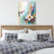 Bedrückte farbenfrohe Blüte auf blau Beige Weiß Leinwanddruck