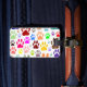 Ein Muster von Hundepuhen druckt in vielen Farben und Größen.