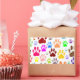 Ein Muster von Hundepuhen druckt in vielen Farben und Größen. Design im Cartoon. Geschenkidee für Hundefreunde.