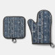 Bedrückter und geflochtener Blauer Jean Denim Ofenhandschuh & Topflappen-Set