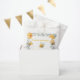 Add a sweet finishing touch to your baby shower with this adorable bee-themed favor bag design! Featuring charming watercolor bees, a beehive, honeycomb, eucalyptus greenery, a honey jar, and a dripping honey dipper, this design is perfect for a Mommy-to-Bee or Sweet As Can Bee baby shower theme.