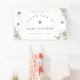 Banner zum Begrüßen von Babyduschen mit niedlichem Blumenmotiv in Gelb und Weiß. Ideal für Hummelduschen und gelbe Babyduschen im Frühling oder Sommer. Einzigartige, von Hand gezeichnet Blüten in Weiß und Gelb.