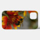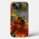 A photograph of a bee foraging on a lovely yellow-orange flower adorns this phone case.