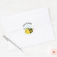 Biene Happy Hummel. Niedliche, sonderbare Aufkleber mit einer Honigbiene aus schwarzem und gelbem Cartoon. Es hat einen großen ovalen gelben Körper mit drei schwarzen vertikalen Streifen. Sein Stinger ist schwarz und hat hellblaue, transparente Flügel. Zwei schwarze Fühler auf dem Kopf und ein niedliches glückliches Gesicht. Der Hintergrund ist weiß, kann aber durch Anklicken des Buttons angepasst und die Hintergrundfarbe Ihrer Wahl ausgewählt werden.