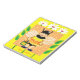 Niedliches Kind in Bienenkostüme mit Honigtopf, Honigwabe und Blume Happy-gelbes Geschenkbild