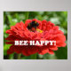 Bee Happy Red Blume Poster