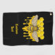 Honigbiene mit offenen Flügeln Ikone über Bienenstock und Honig fällt. Benutzerdefinierte Hintergrundfarbe. Eigener Text.