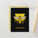 Honigbiene mit offenen Flügeln Ikone über Bienenstock und Honig fällt. Benutzerdefinierte Hintergrundfarbe. Eigener Text. Nahtloser Musterhintergrund auf der Rückseite.