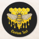 Honigbiene mit offenen Flügeln Ikone über Bienenstock und Honig fällt. Benutzerdefinierte Hintergrundfarbe. Eigener Text.