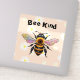 Delicate and Modern Bee design, BEE KIND cut vinyl car sticker featuring, a bee with a sunflower on it's back and pastel coloured wings on a white daisy background.