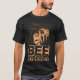 Dieser schwarze T - Shirt zeigt eine detaillierte Abbildung einer Biene, die über einem Wabenmuster herumschwebt. Unter der Biene wird der Text "BEE MY HONEY" in einem bedrückten, blockigen Schriftart angezeigt. Das Design verbindet Naturbilder mit einer süßen und liebevollen Botschaft.