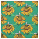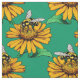 Bee on Sunflower Flower Pattern Design Green Stoff