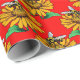 Bee on Sunflower Flower Pattern Design Red Geschenkpapier