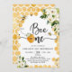 Bee One Honey Bee Floral 1st Birthday Invitation