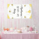 Süßes Bienenbanner zum ersten Geburtstag mit verschiedenen niedlichen Bienen, Honigwabenkomben und Tropfhonig. Das Design umfasst auch einige dekorative Wirbel. Dieses Poster kann sowohl für eine Geburtstagsfeier eines Mädchens als auch für eine Junge verwendet werden.