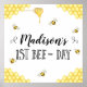 Bienentheater GeburtstagsPoster Süßbiene Erstes Geburtstagsposter mit verschiedenen niedlichen Bienen, Honigweinen und Tropfhonig. Das Design umfasst auch einige dekorative Wirbel. Dieses Poster kann sowohl für eine Geburtstagsfeier eines Mädchens als auch für eine Junge verwendet werden.