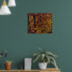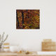 Dieses Poster zeichnet sich durch ein wunderschönes impressionistisches Design eines Buchenwaldes in brillanten Herbstfarben Rot, Braun, Gelb und Gold aus. Einige dunkelbraune Stämme gucken durch die Blätter.