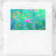 Beeindruckende blaue Landschaft mit rosa Blume Rechteckiger Aufkleber