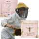 Vintage Queen Bee Illustration auf einer Rose Gold Hintergrund. Die Rückseite des Labels kann so angepasst werden, dass Sie angeben, was Sie verkaufen und welche Dienstleistungen Sie anbieten. Für Handy, Website oder E-Mail wird ein Platz zur Verfügung gestellt. Farbige Wildblumen unten auf der Karte auf der Rückseite.