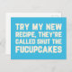 "Probieren Sie mein neues Rezept, sie werden die Fucupcakes geschlossen genannt" lustiges Zitat.