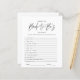 Ändern Sie die Hintergrundfarbe oder fügen Sie Grafiken zu Ihrem Hochzeitstil. Natürlich ist es nicht erforderlich, dass Sie im Brautparty spielen, aber denken Sie daran: Sie werden eine Gruppe für alle Altersgruppen haben, und die meisten Gäste haben sich wahrscheinlich noch nie vor dem Party getroffen. Das Mischen in ein paar dieser klassischen Brautparty-Spiele ist ein perfekter Weg, um das Eis zu brechen. Unsere doppelseitigen Spielkarten sind eine elegante und praktische Ergänzung zu jeder Dusche. Diese professionell gestalteten Karten sind schnell anpassbar. Fügen Sie diesem Design Ihre benutzerdefinierte Formulierung hinzu, indem Sie die Felder "Diese Designvorlage bearbeiten" auf der rechten Seite des Elements verwenden, oder klicken Sie auf die blaue Schaltfläche "Anpassen", um den Text anzuordnen, die Schriftart und Farben zu ändern und um diesem Design zusätzliche Informationen oder Bilder hinzuzufügen. Klicken Sie auf "Weitere Einstellungen vornehmen", um alle Bearbeitungsoptionen zu öffnen. Wenn Sie Koordinierungsaufgaben haben (danke Karten, etc.), kontaktieren Sie mich bitte für eine individuelle Bestellung. ****Für individuelle Anfragen, die Sie mit meiner Hilfe benötigen, stellen Sie diese Ware nicht in Ihren Warenkorb. Stattdessen schicken Sie mir Ihre Anfrage unter lauralise@iyhtvdesigns.com Ein Link zu Ihrer Ware wird Ihnen per E-Mail zugeschickt, sobald der Artikel verfügbar ist. Über diesen Link können Sie Ihre Bestellung aufgeben. Bitte warten Sie bis zu 48 Stunden.