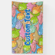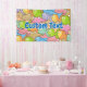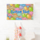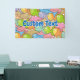Seamless pattern background of colorful happy, smiling fish cartoons. Custom Text.